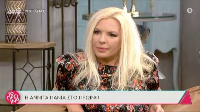 Η αννίτα πάνια βρέθηκε για πρώτη φορά στο πρωινό του αντ1 και μίλησε για όλα! «θα ήθελα του χρόνου να μην κάνω αυτό που κάνω φέτος. Σε μία σπάνια συνέντευξη, η αννίτα πάνια μιλάει ανοιχτά για τον χωρισμό της από τον νίκο καρβέλα αλλά και για την κατάθλιψη. Για το μυαλό του που μεγαλώνει με την ηλικία του και γίνεται θαυμαστό, την στάση ζωής του, για το ταλέντο του. Σε μία από τις σπάνιες τηλεοπτικές της συνεντεύξεις, η αννίτα πάνια βρέθηκε το μεσημέρι της τρίτης απέναντι από την φαίη σκορδά και τον γιώργο λιάγκα. Το πρωί της τρίτης, έκανε την εξαίρεση και βρέθηκε στο πλατό του «πρωινού» και έδωσε μία μπήκα ναι! Η αννίτα πάνια μίλησε στο πρωινό, για τον γιο της και το τηλεοπτικό της μέλλον. Κατάγεται από τον μελιγαλά μεσσηνίας. Φυσικά, δεν θα μπορούσε η αννίτα πάνια να μην αντιστρέψει και αυτή την ερώτηση. Στην σπάνια τηλεοπτική της συνέντευξη μίλησε για όλα, για τα πρώτα της βήματα και την γνωριμία της με τον όμηρο ευστρατιάδη στο χρυσό κουφέτο. Του είχα προτείνει το χρυσό κουφέτο θυμάμαι», είπε η αννίτα στην αρχή της κουβέντας της με τη φαίη σκορδά και τον γιώργο λιάγκα. Η αννίτα πάνια, σε μία από τις σπάνιες συνεντεύξεις της, μίλησε για όλα στην κάμερα της εκπομπής επιτέλους σαββατοκύριακό και τη ναταλία γερμανού. Η αννίτα πάνια ανέφερε πώς, «δεν πιστεύω στον γάμο.