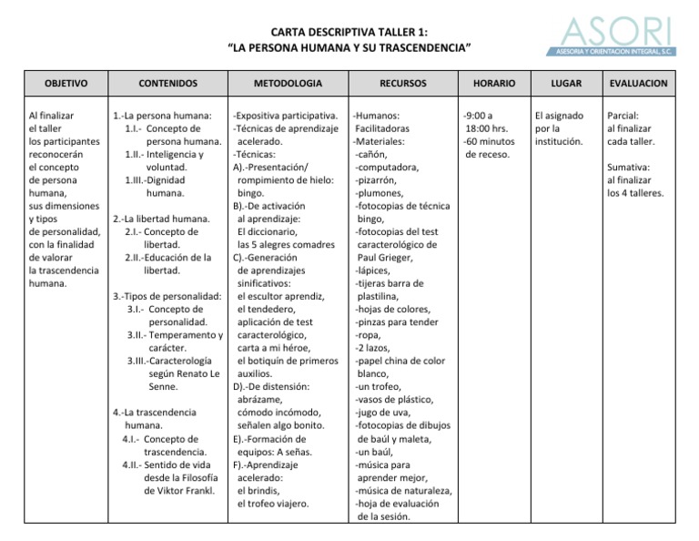 La carta descriptiva es una guía que permite al instructor y al participante llevar a cabo el curso con los contenidos y tiempos programados, además de cubrir los objetivos y las expectativas de los participantes. Cartas la carta descriptiva de un curso es un documento en el que se descriptivas indican, con la mayor precisión posible, las etapas básicas de todo proceso sistematizado. En esta actividad los niños son los el elote se cultiva en su pueblo y es alimento de temporada, deconsumo diario para la preparación de tortilla cuando ya es maíz. Elaboración de la carta descriptiva. El video pretende apoyar a todos los instructores que desean hacer una carta descriptiva o temario con la finalidad que ofrezcan servicios estandarizados a.